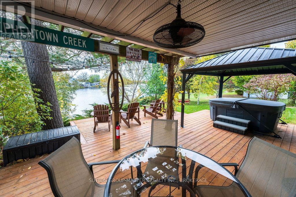 Nestled along the peaceful shores of Colonel By Lake, this enchanting 2-bedroom + den, 2-bathroom home blends rustic charm with modern elegance. Set on approximately 0.43 acres with 123 feet of waterfrontage, this property offers a serene retreat just minutes from town amenities-only an 8-minute drive away. Step inside and be greeted by the warmth of wide-plank pine floors, a cozy propane fireplace, and an open-concept kitchen designed for entertaining, featuring a large island and stunning water views through expansive windows. The natural light and panoramic views of the bay create an inviting, relaxed atmosphere throughout. Upstairs, the spacious primary suite spans the entire half-storey, offering a private sanctuary with a walk-in closet, ensuite bathroom, a generous sitting area, and sliding glass doors onto your private balcony- perfect for quiet mornings or unwinding after a long day. Outside, enjoy the tranquil waterfront lifestyle with plenty of space to relax, entertain, or launch a kayak from your shoreline. The attached double garage adds convenience, while the property's rustic-meets-modern design provides timeless appeal. With only 24 homes in this exclusive lakeside enclave, opportunities like this are rare. Whether you're a couple seeking a peaceful retreat or a small family looking for a place that feels worlds away yet close to everything - this Colonel By Lake gem is ready to welcome you home. (id:4069)